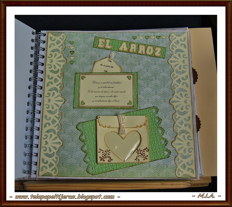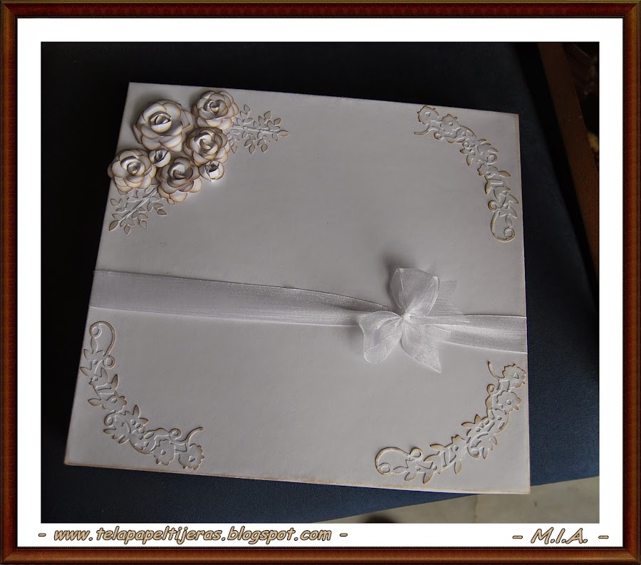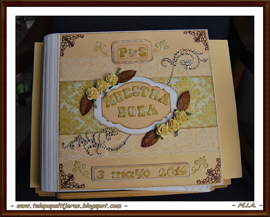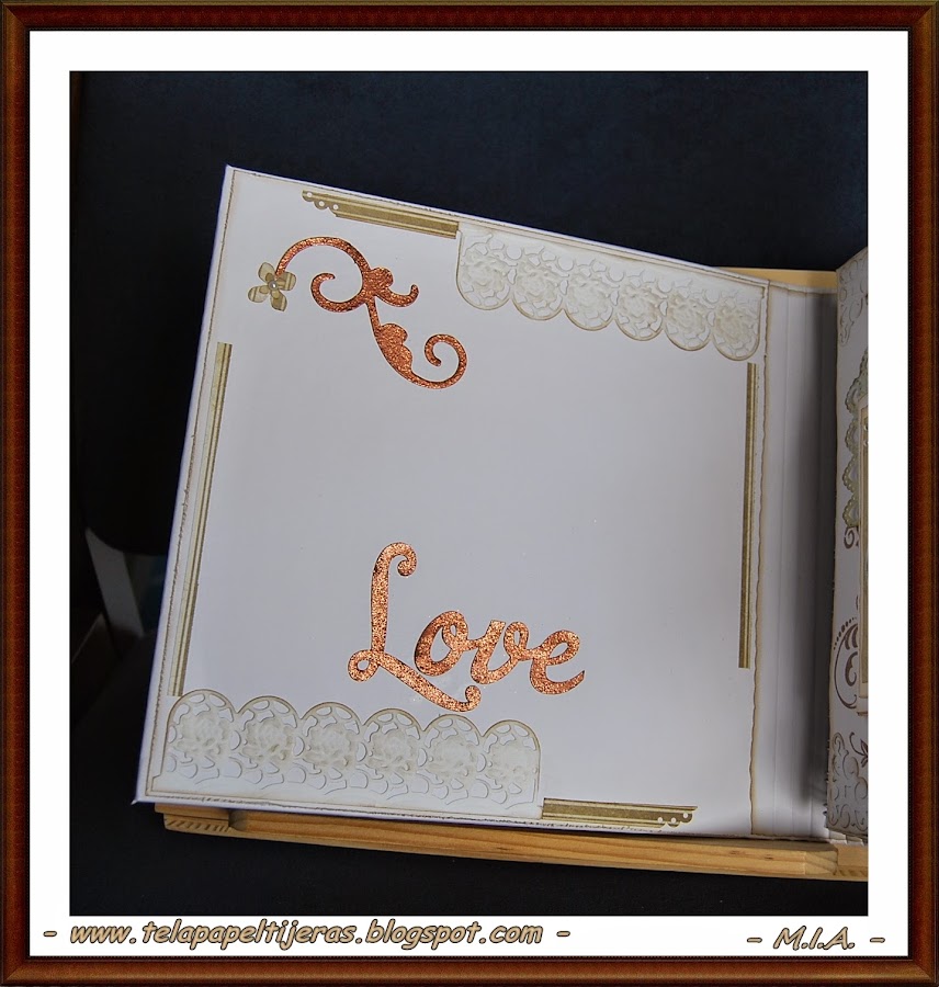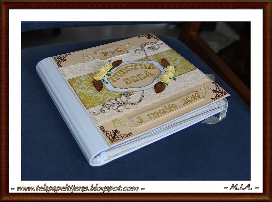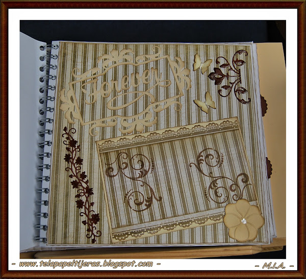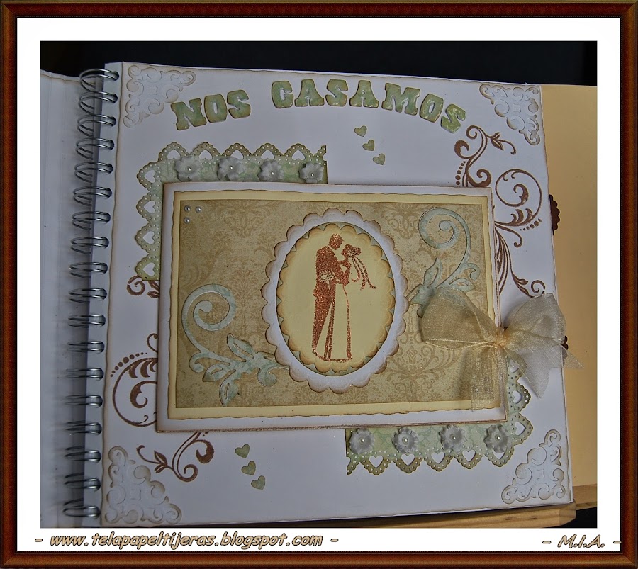 ... Un nuevo álbum de bodas... Los papeles que he usado son de My Mind"s Eye... Troqueles, sellos, flores, perlitas, arabescos, encajes, lazos...