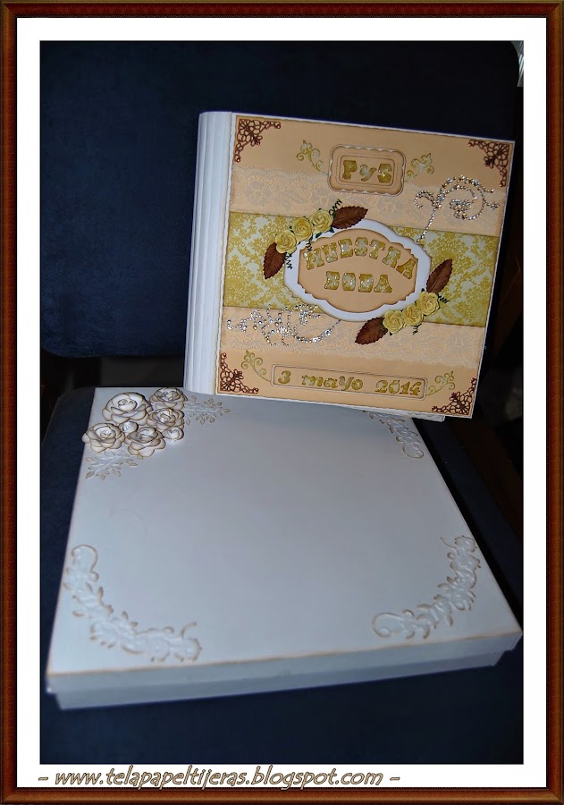 Como complemento realicé una caja desde cero, partiendo de cartón de proyecto y cartulina blanca y según las medidas del álbum...