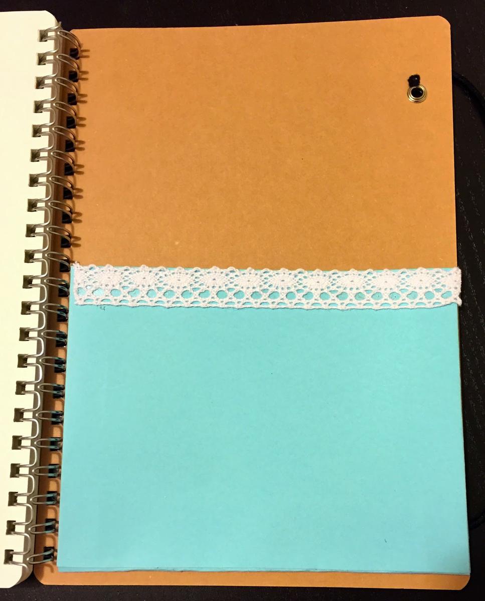 Con cartulina turquesa le hice un compartimiento para que pueda guardar papeles y demás cositas que ella crea oportuno, lo decore con cinta de Fabric Tape para darle un toque MOLÓN.