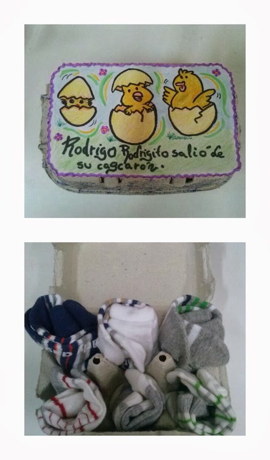 Otras cositas que le podéis llevar al peque es un sonajero, un chupetero o incluso una huevera llena de calcetincillos:
