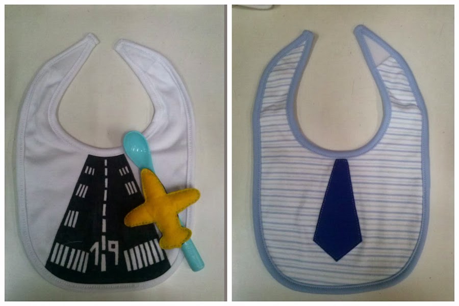 Y para cuando empieza a comer y no quiere, nada mejor que hacer "el avioncito" con un avión-cuchara y una pista de aterrizaje.... porque los baberos son necesarios... y por ello también podemos customizarlos para adaptarlos a cualquier evento en el que vayáis arreglados, he aquí esta babero-corbata: