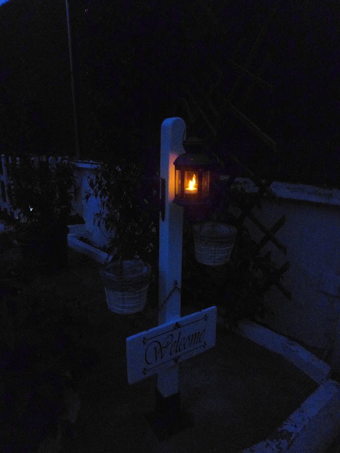Con su velita como tiene que ser, para que cuando anochezca siga dando la bienvenida