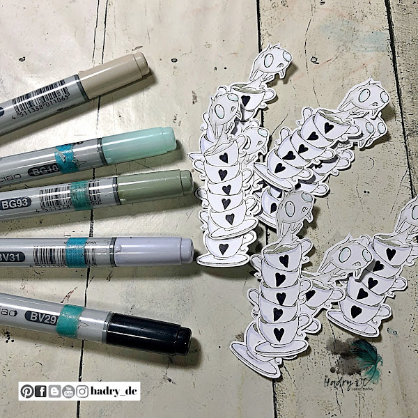 Con la tinta Versafine Clair "Nocturne" he estampado un sello de a.b.studio de Tickets, otro de Mintopia de Labels y una líbelula y el título del set "Dare to Dream" de Finnabair, los he recortado para terminar mi composición del ATC.