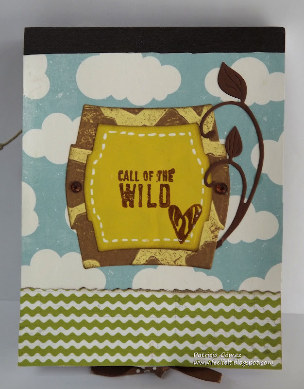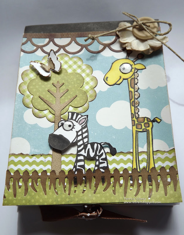En el centro dos etiquetas, del troquel Spellbinders Labels Two, la de debajo embosada con carpeta Darice Giraffe Print Animal.