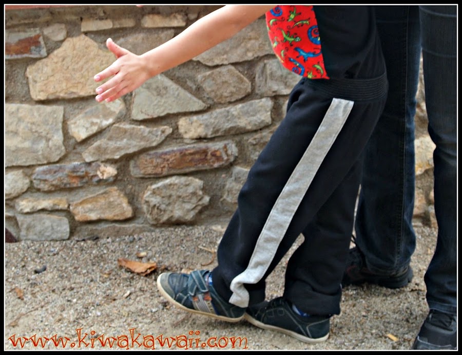Sudadera negra y gris glaro, con puños larguitos abajo (para que le duren un poco más), y puño en la cintura. Me encantan esas franjas verticales a contraste. Me huelo que van a caer más de éstos!
