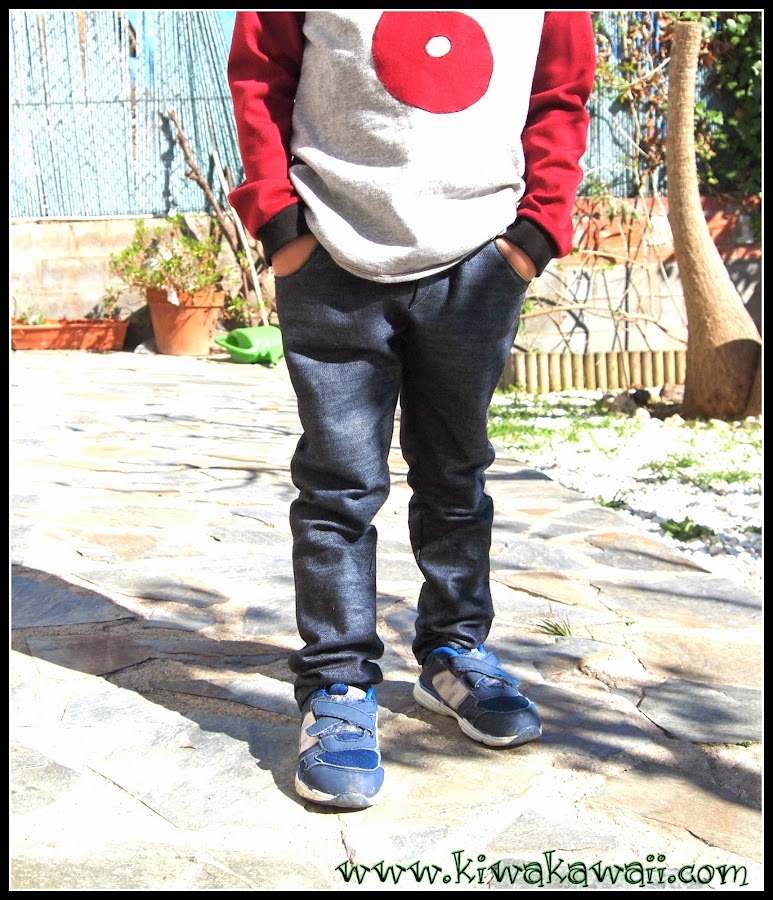 Eso es lo que pensé con la revista (ottobre 6/2014) y las telas sobre la mesa... Sin embargo fue cortar las piezas y poner el primer bolsillo... y empezaron a parecerme un poco ¿femeninos? estos pantalones. En fin, yo sigo.