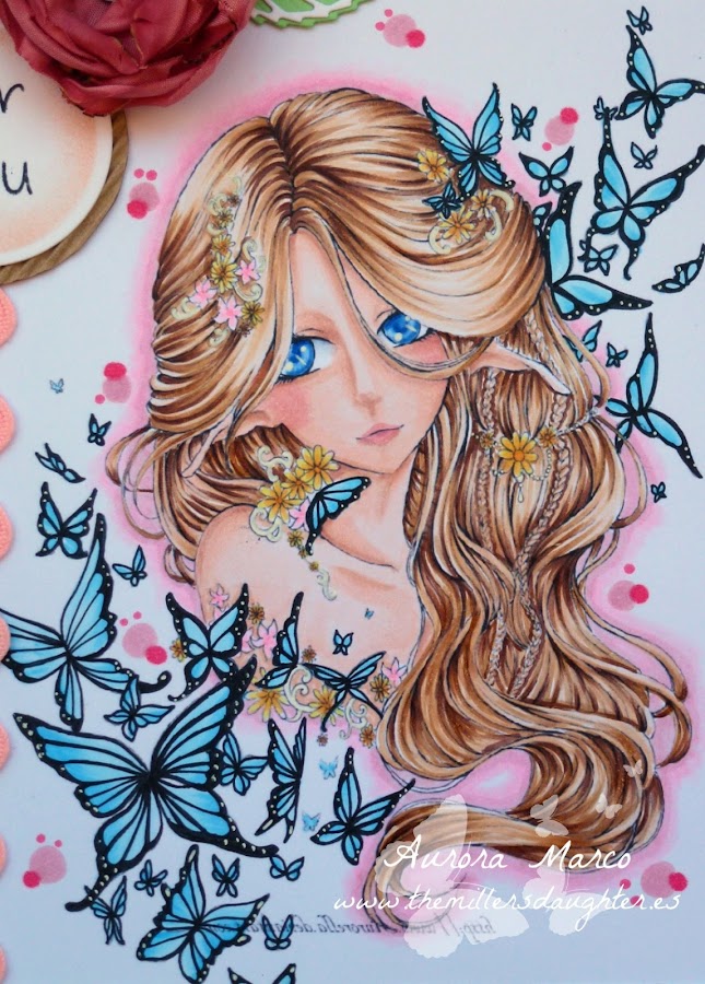 In this card: Butterfly Dreams from Aurorella, patterned papers, die cuts, frantage, paper flower, rick rack ribbon, hand made fabric flower and fake badge.