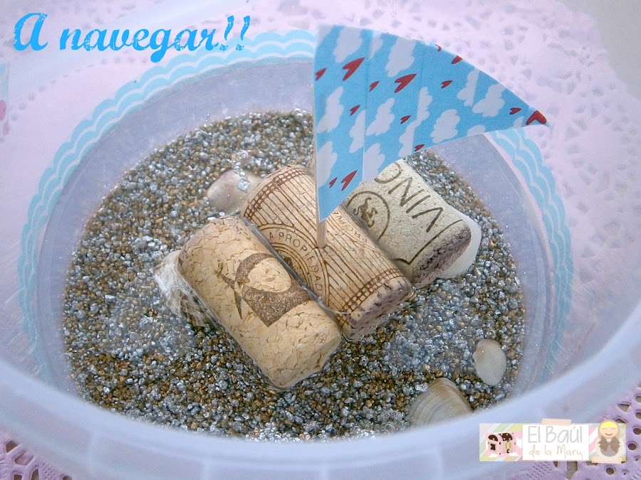 Fácil ¿verdad? Ahora solo tenemos que rellenar con agua. No hace falta echar mucha, y meter nuestro barquito dentro a navegar y surcar los siete mares!
