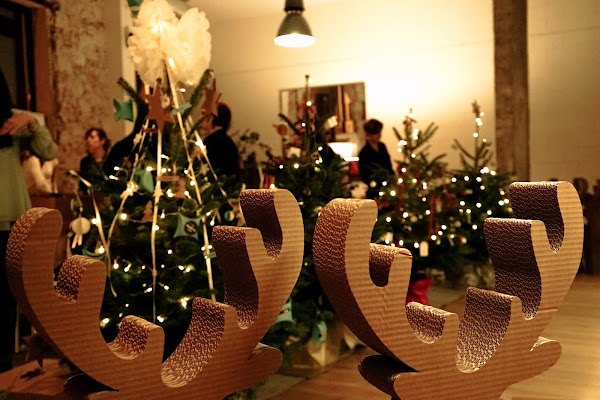 El siguiente taller nos enseñaron como reciclar papeles y cajas de cartón para crear adornos para nuestro árbol de Navidad. Sólo tenéis que cortar el papel en trozos pequeños y poner en agua caliente para que se ablande el papel. Cuando ya este suficientemente empapado, se tiene que hacer una bola con el papel que sea lo más compacta posible y después mezclarla con cola blanca. Cuando tengamos una masa compacta, sólo tenemos que coger un molde con la forma que queramos (corazón, circulo, estrella, árbol..) y meter la masa en el molde, retirando la parte que sobre. Después sacamos el molde y lo dejamos secar. Y cuando este seco, lo puedes pintar del color que tu quieras y ya tienes tu adorno navideño.
