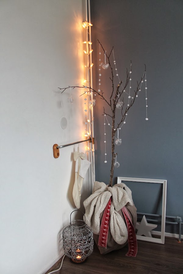 Aprobechando este rinconcito, que no me gusta nada por la cantidad de tuberias que tiene decidi sacartle partido y tratar de verlas del lado positivo, coloque una ramita con un par de adornitos y tralalala !