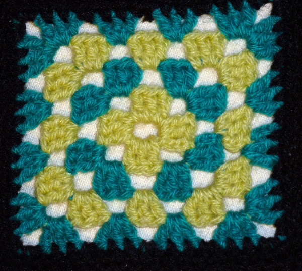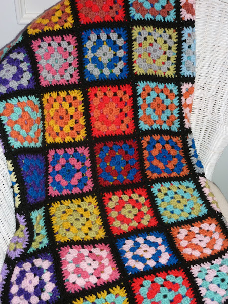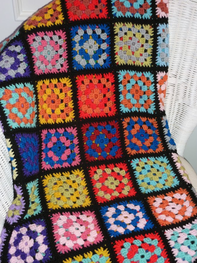 La primera mantita que terminé fue esta, haciendo cuadrados "granny square" que son de los más sencillos...