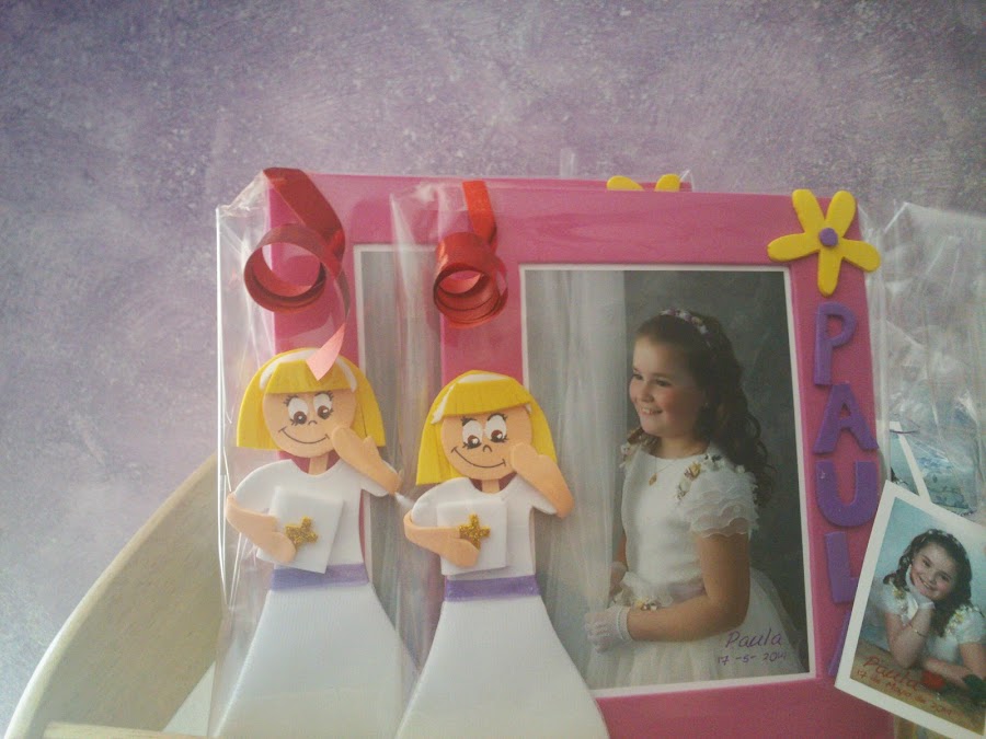 Hola chicas pues aqui os dejo una foto del ultimo trabajo que he echo de px, es un recuerdo de 1ª comunion para la nieta de una amiga de mi madre que hizo ayer la comunion.