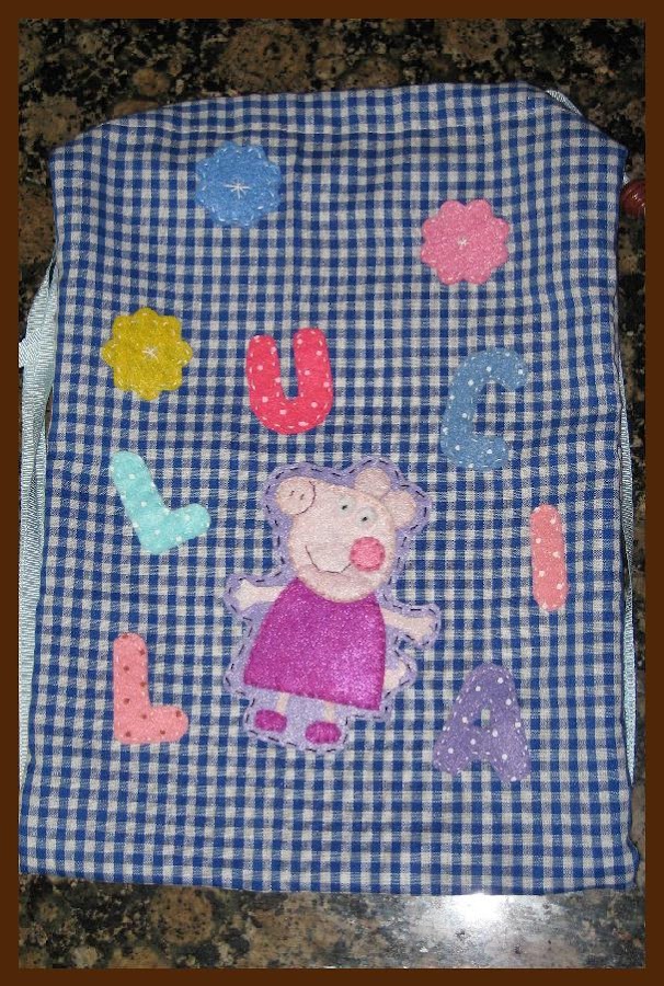 Con el inicio del nuevo curso se nos llenó la casa de publicidad de diversas tiendas que nos ofrecían todo para la vuelta al cole, y uno de los artículos estrella era, como no las mochilas... y allí estaba ella, en una página completa, mochila trolley, grande, mediana, estuche,... Y claro la pequeñaja se enamoró: "¡yo quiero la mochila de Peppa!". El problema es que en el cole de mi hija hasta que no hacen primaria no les dejan llevar lo que entendemos por mochila, simplemente tienen que llevar una pequeña bolsita de tela para la merienda, y en ese formato, aunque lo encontramos de otros personajes, el de Peppa no lo tenían (aunque existe, porque después lo he visto en algunos niños).