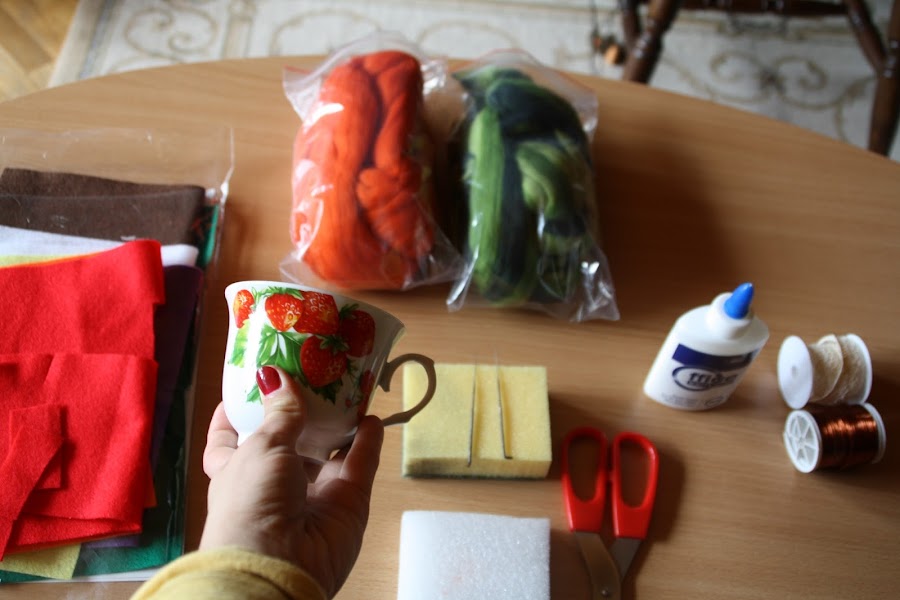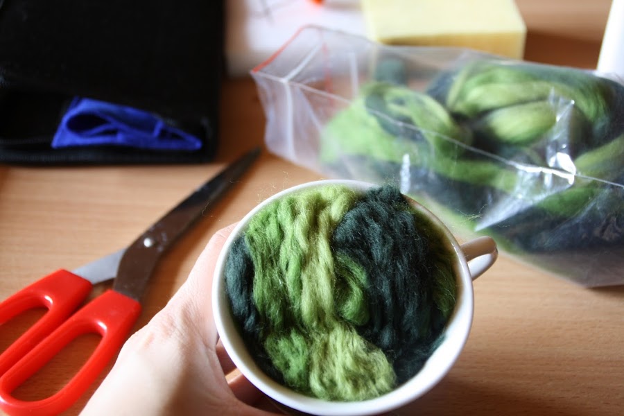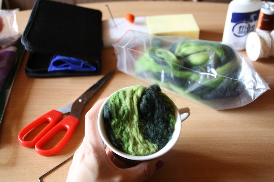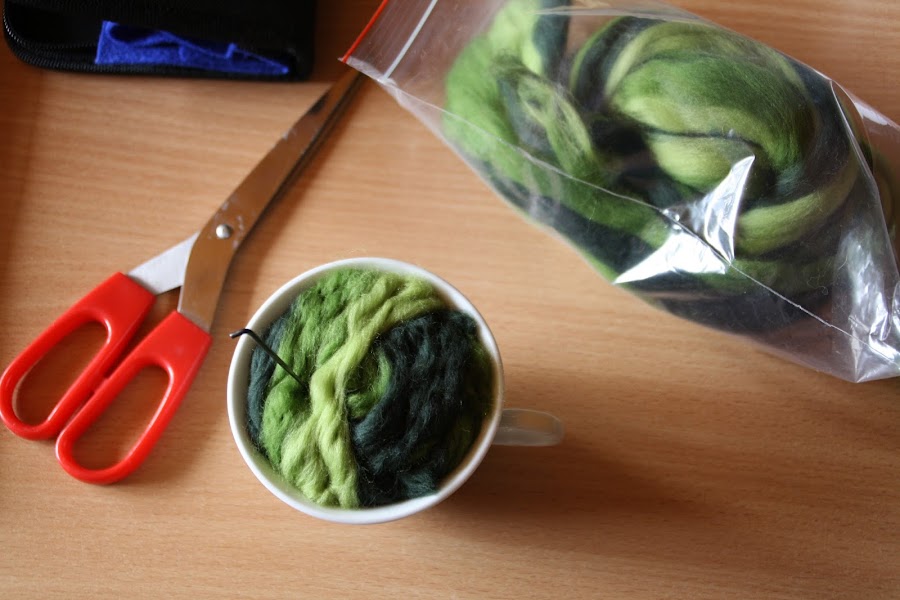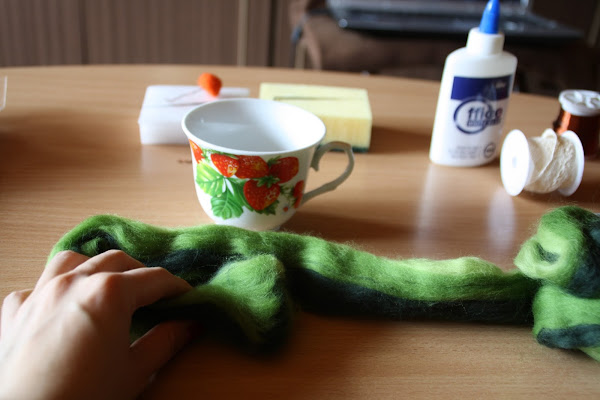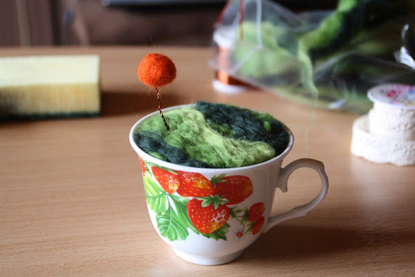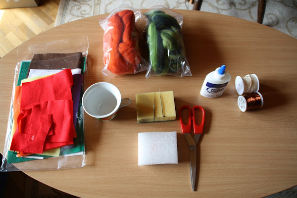 Intrigada por la técnica con la que habían sido realizadas estas maravillas, desconocida para mí hasta entonces, supe que las había hecho con lana afieltrada. La lana afieltrada es lana corriente (normalmente tratada y teñida...suele venderse en cantidades pequeñas en tiendas de manualidades), que después modelaremos con la ayuda de, o bien agua, o bien una aguja especial pensada para este tipo de trabajos. Es algo así como esto: