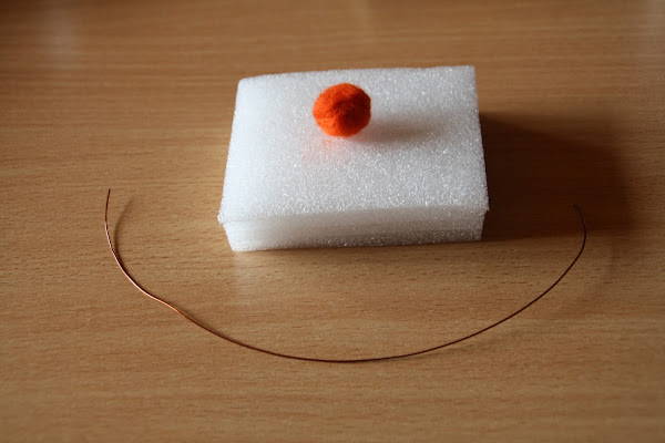 Ahora cogemos esta bolita, y le ensartamos en un trozo de alambre retorcido, y ya tenemos un arbolito.