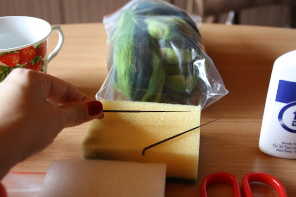 2)Hincad la aguja con ganas. No le hagamos "cosquillas" a la lana,porque de ser así no se transformará en fieltro.