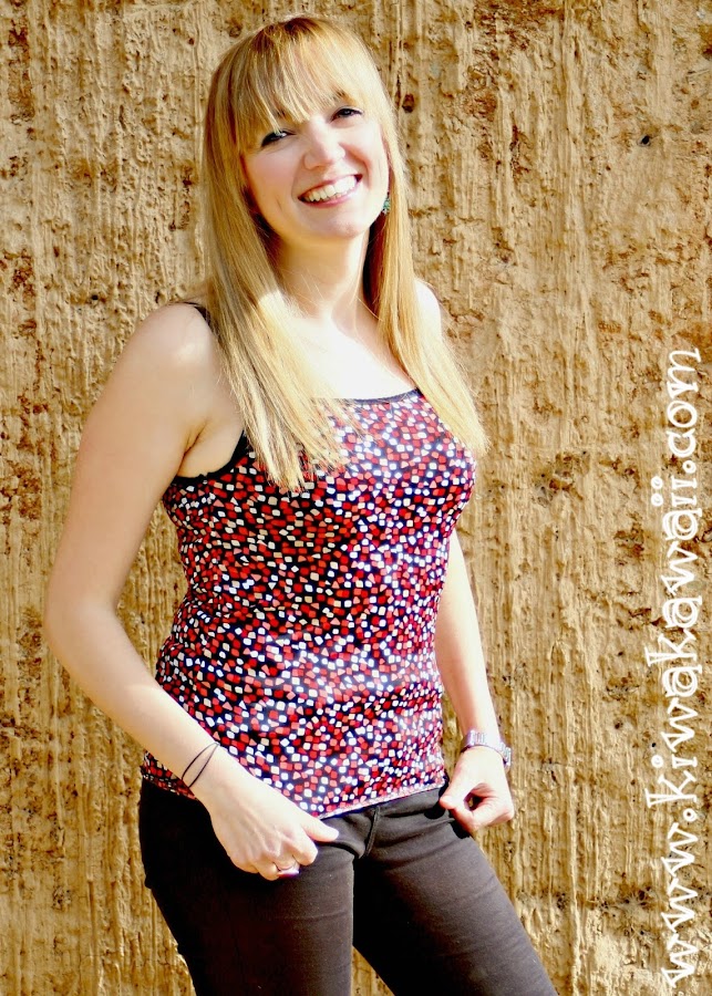 Una pieza fresca y cómoda, para llevar este verano o como camiseta interior. Yo la he cosido con lycra muy fresquita y los tirantes con FOE, que para este tejido me encanta como queda, por el lado mate.