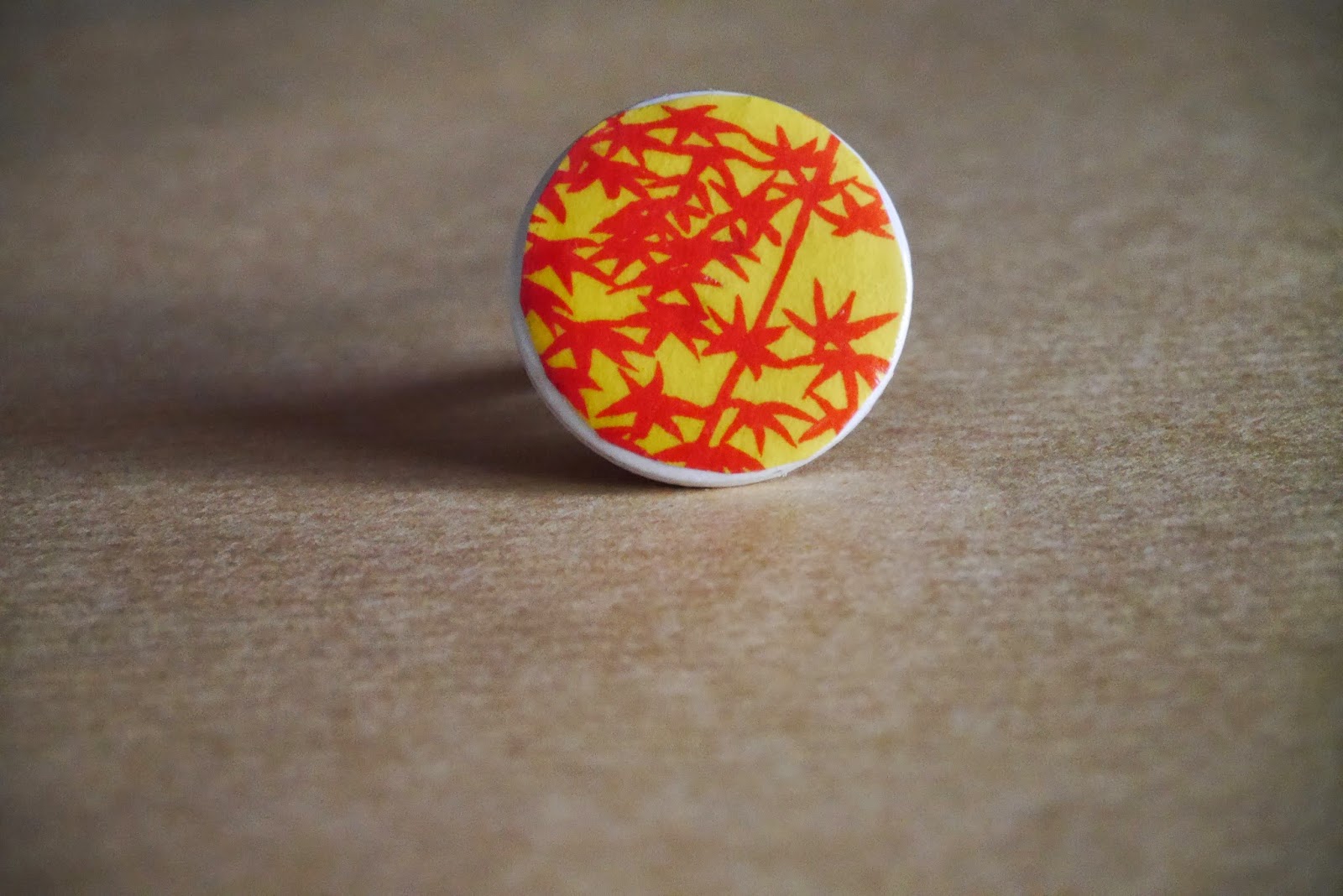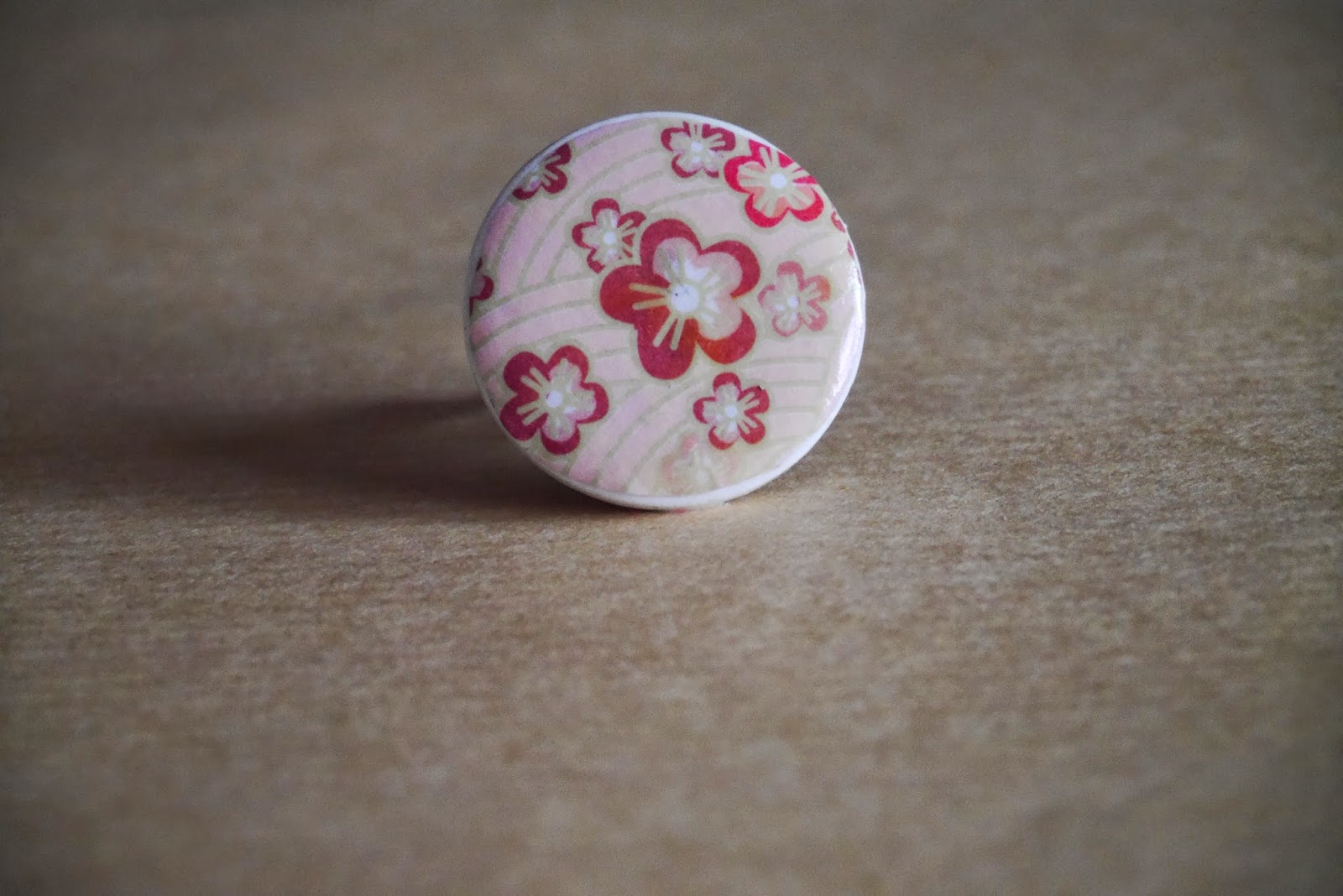 papel washi. El papel washi es un papel tradicional japonés, muy resistente y bellamente decorado. Pero puede usarse otros papeles (de origami, scrapbooking,...) escoged el papel que más os guste. En este caso hemos elegido un papel con un estampado de medida casi igual al botón