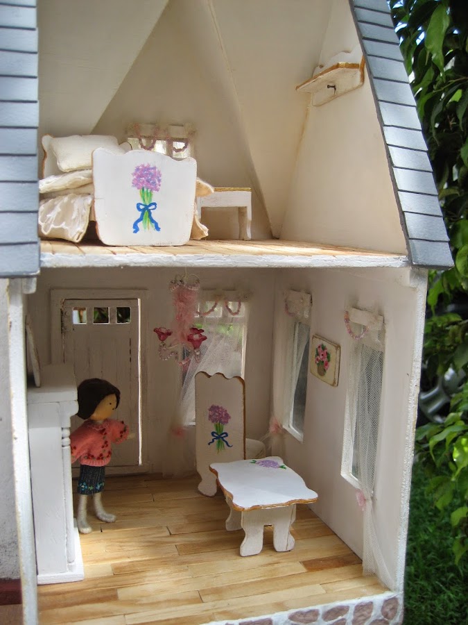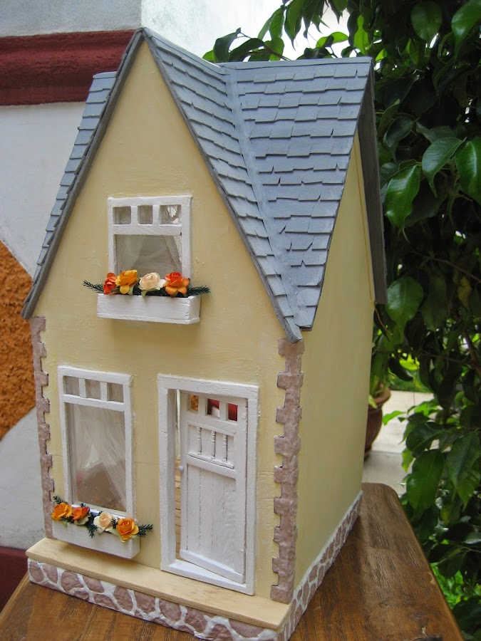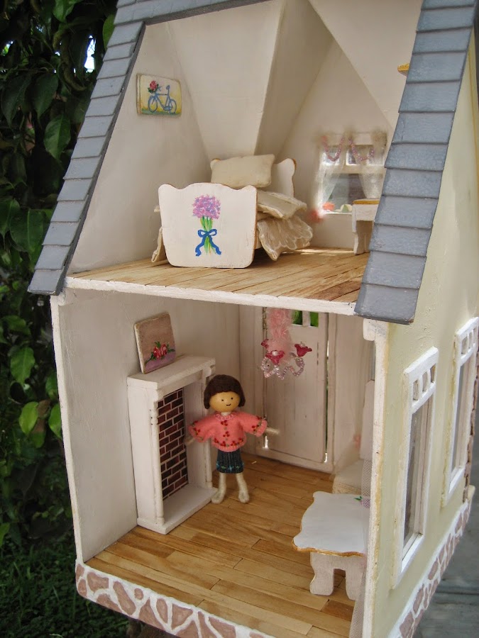 Cambiando de tema hace poco empece a vender casitas,y me ha ido muy bien! ya tengo un par de encargos y vendí una de las que ya tenia hechas, definitivamente creo que este es mi año.... el día de hoy les presento una nueva casita mide 39 cm alto por 23 cm ancho y 20 cm de fondo aprox. totalmente de madera y amueblada.