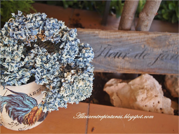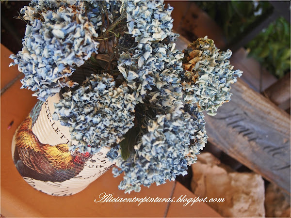 Al final he recuperado la malloria de ellas... las hortensias, que fueron lo que más sentí, las he podido utilizar para este centro que os he mostrado.