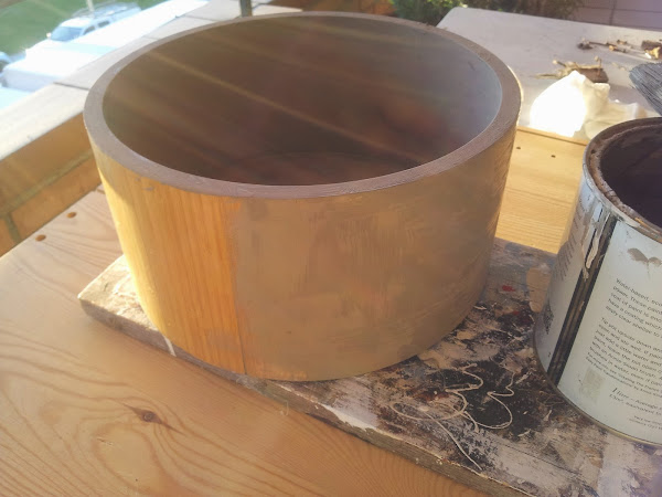 Pinté la base con chalk paint gris, vela y luego blanca. El resultado me parecia soso, así me dedique a dar brochazos en azul.