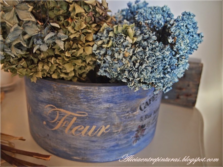 Nota: Si alguien está interesado en cambiar una servilleta como la que he utilizado en la decoración de la lata, por otra de flores grandes (no florecillas de fondos), poneros en contacto conmigo.
