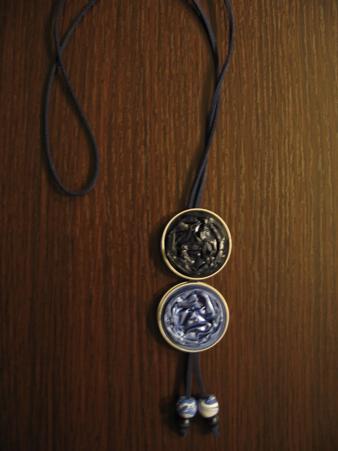 Aquí un collar, al que a una de las cápsulas le hice decopage.