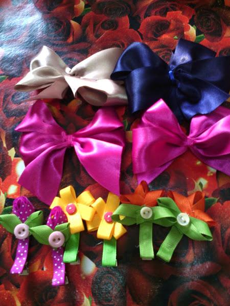 En una tarde en compañia de mi prima hemos hecho estas preciosas moñas para cabello