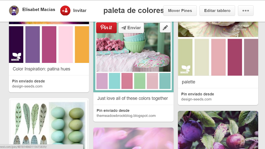 El tablero de las paletas de colores, está compuesto de diferentes combinaciones que voy "pineando" de aquí o de allá.