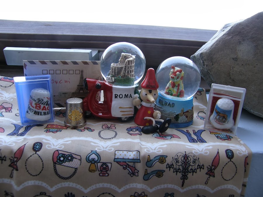 Pero me echaron de menos..... Isa se acordo de mi y mis niños y sobre todo de la colección de bolas de nieve de Elias, del iman de Pinocho para Felipe de unos dedales para mi no coleccion y de una tela a la que le voy a sacar mucho partido.....