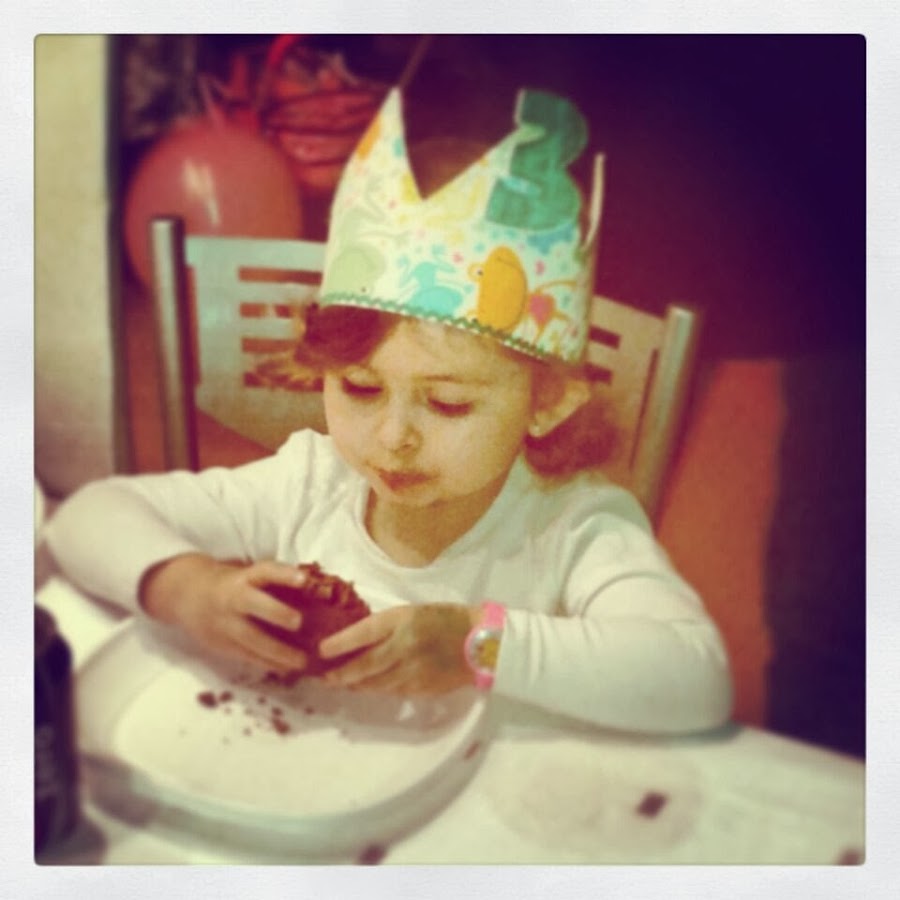 Y aquí tenemos a la reina de la fiesta luciendo su regalo hand made