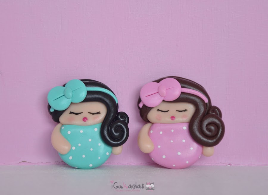 Se acabaron los tonos oscuros y grisaceos y empezamos con los tonos pastel, en los broches de ositas y conejitas los tenéis.