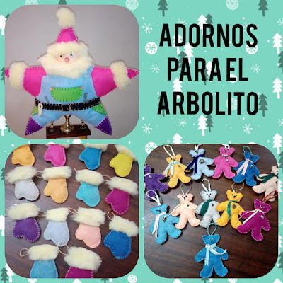 Por eso, me anime y comencé desde ya a confeccionar estos adornos en fieltro, en colores vibrantes y no los tradicionales de la época, para decorar el árbol de navidad.