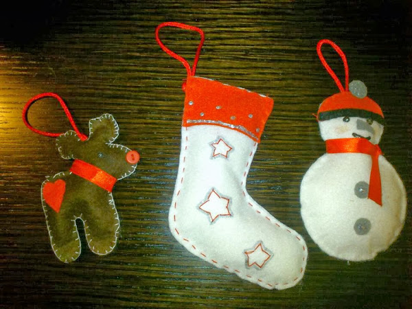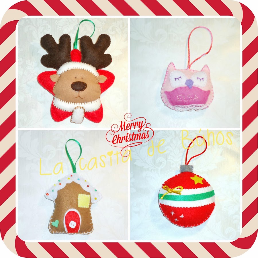 Pues sí señores, ¡la navidad ya está aquí!. No hay nada como tener niños para empezar los preparativos de Navidad semanas antes. Así que ayer mismo nos pusimos a montar el árbol de Navidad (ha quedado una monada) y el Belén. ¡Me encanta el espíritu navideño! y... este mes se cumple un año de mis primeros pinitos con el fieltro. Estos son parte de los adornos que hice el año pasado y no quedaron nada mal, ¿verdad?: