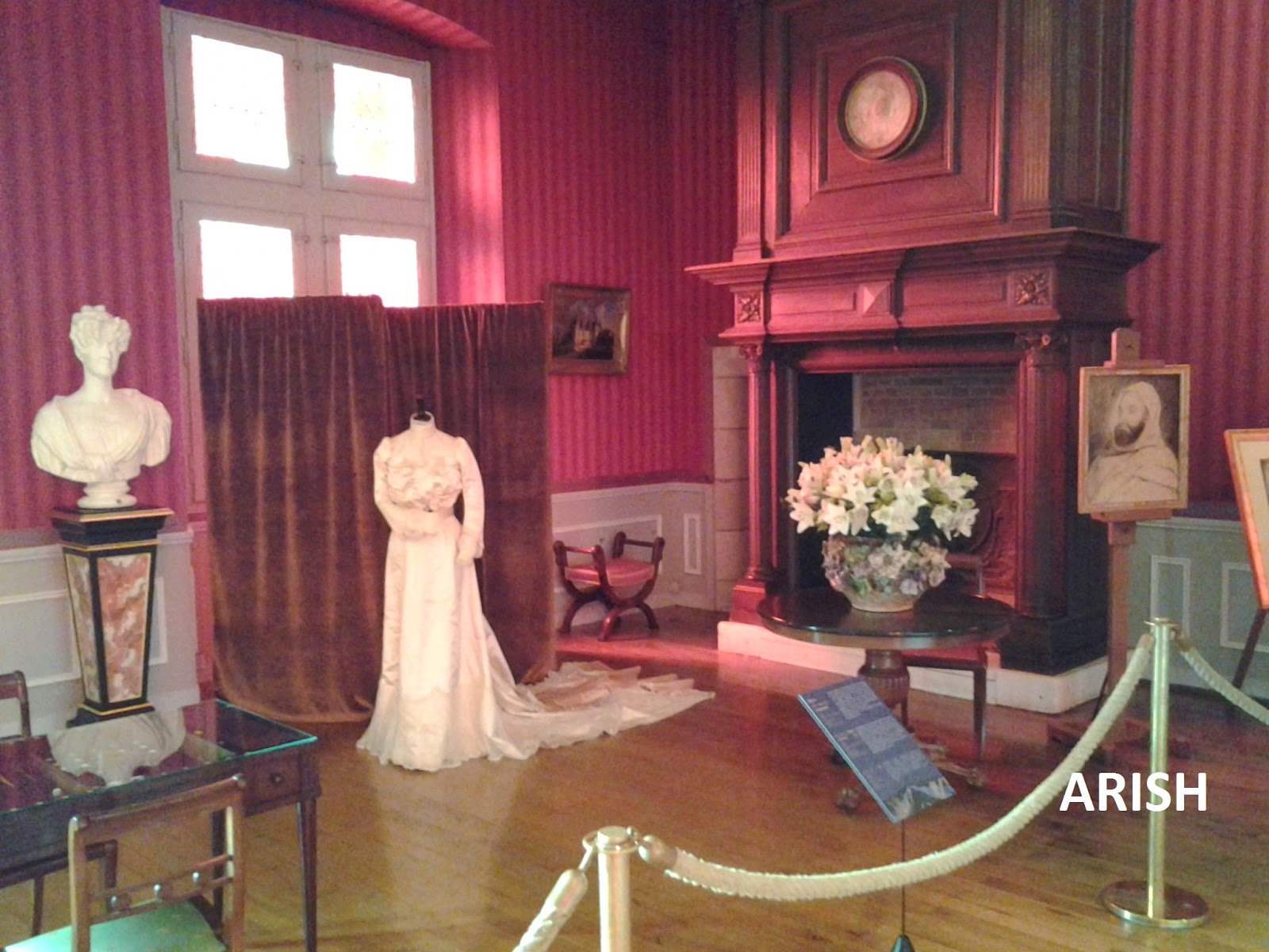 me llamó la atención éste vestido de novia de seda, es auténtico, menos que una talla 34, para alucinar. pero hay que tener en cuenta que la propietaria tenía 14 años cuando se casó; está en el castillo de Amboise
