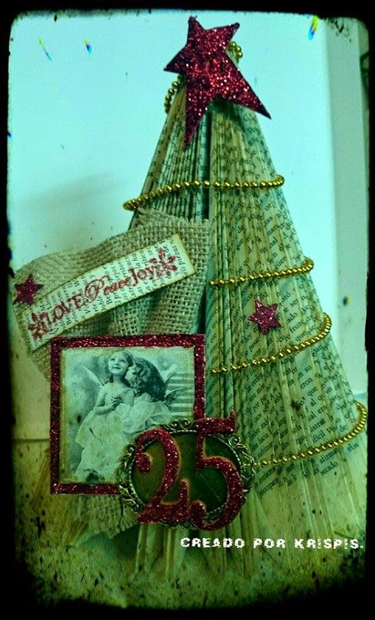 Holaaaa ya falta poquito para Navidad, este año he podido hacer alguna cosita, me encantan los colores tipicos de la Navidad, rojo, verde, oro,marrones..... la verdad que este año no he tenidao mcho tiempo para adornar nada, el árbol y nada mas, con un bebe mas no da mas de si el día. He decidido reciclar unos libros viejos que tenia guardados y hacer con ellos adornitos para estas fechas. A ver que os parecen estos arbolitos, os enseñare mas cositas en estos días. Gracias por pasar os dejo el enlace a mi facebook, que también podéis visitar. https://www.facebook.com/creadoporkrispis?fref=ts