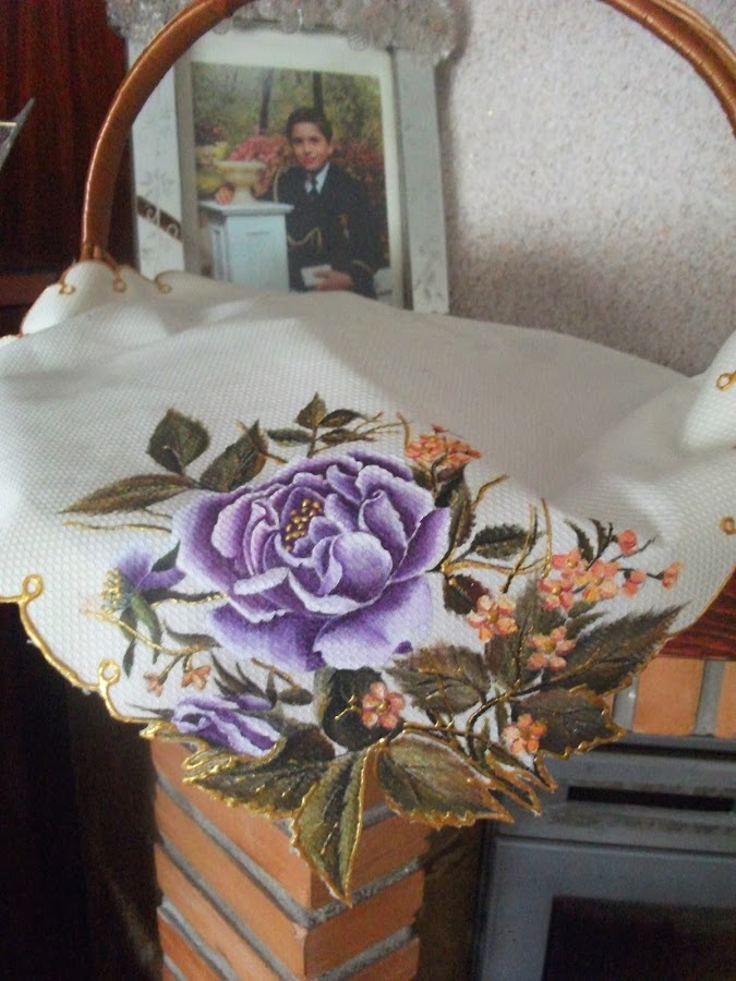 Llega San Blas y toca llevar a bendecir el roscón, dulces o lo que quieras y para que el cesto quede bonito que mejor que un paño pintado a mano, a mi me encanta.