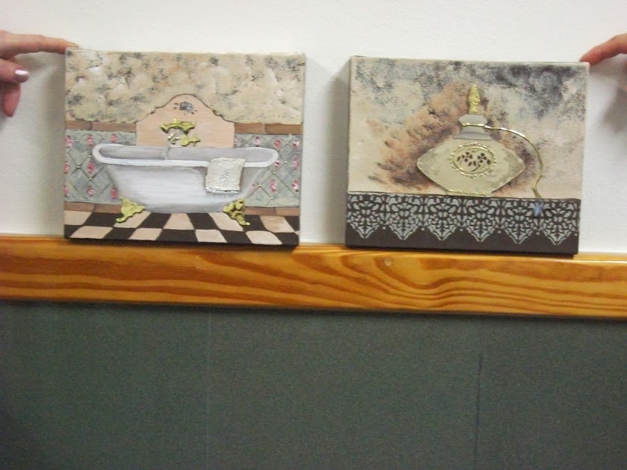 Rosa por su parte ha acabado unos cuadros para baño, la pena que lucirán en otra casa, este año le toca hacer regalos.