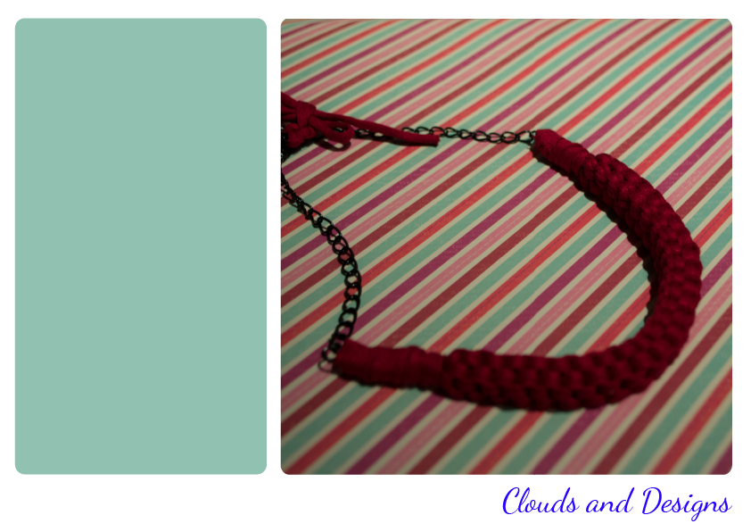 La otra cosita es un collar de trapillo, en post anteriores lo enseñé hecho con trapillo blanco con colorines, y esta vez me he decantado por el rojo granate.