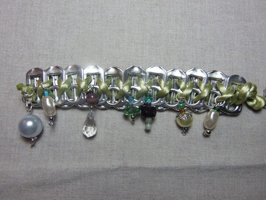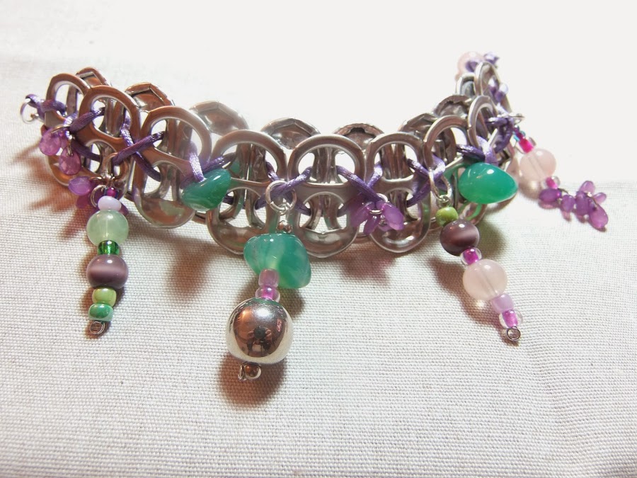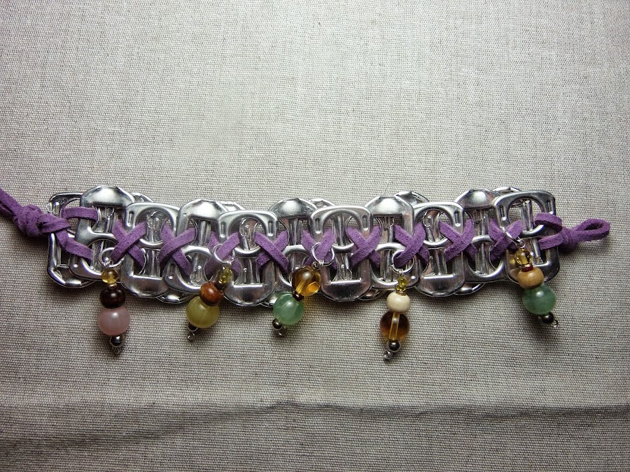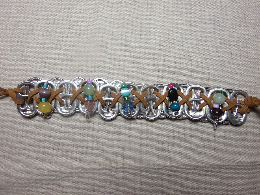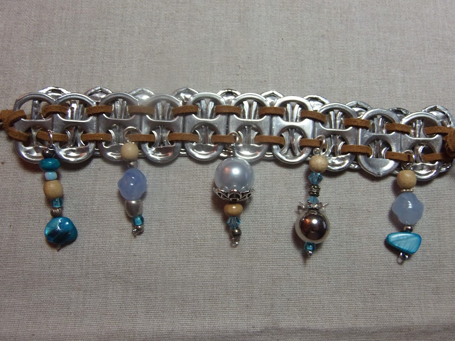 Como podéis ver las pulseras están hechas con chapas de aluminio recicladas y cuentas recicladas también, pero el resultado es espectacular.
