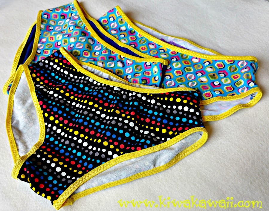 Para estas tres braguitas, he utilizado mi propio patrón y las he rematado con FOE amarillo. Reconozco que si no fuera por la iniciativa #YellowIsTheNewBlack de Anna (Cal Joan y Más) y Marta (Fushu Fana), lo más seguro es que el FOE habría sido azul oscuro... y realmente me encanta el contraste del amarillo. ¡Gracias chicas! El amarillo estaba dormido en mi vida y ¡lo habéis despertado!