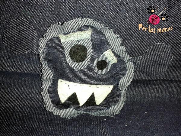 Y colorín colorado, este cuento se ha acabado. Vale, es un cuento algo tonto jajaja. Pero la imaginación no me daba para más. He hecho a esta monstruita con tela vaquera, como podéis ver, para poder mezclar los dos retos. No me lleva a convencer porque en vez de hacerle una cara terrorífica, pues me ha salido seria, incluso diría que tristona, aii aiii.