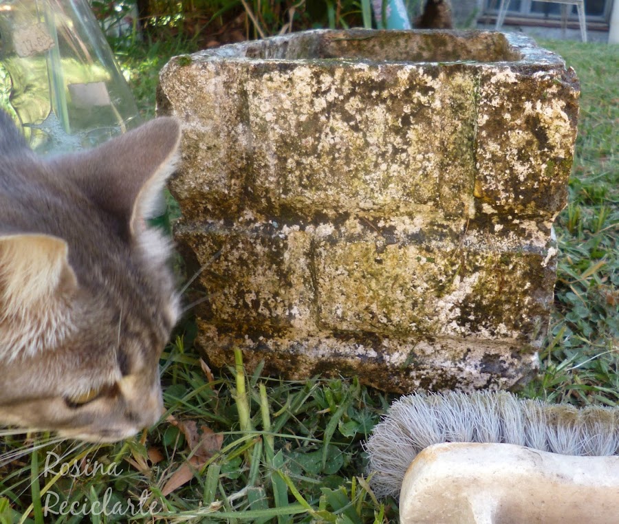 Creo que ni Triage(mi gata)podía creer el estado asqueante de la maceta cuando me decidí a sacarla del ostracismo de aquel rincón del jardín.