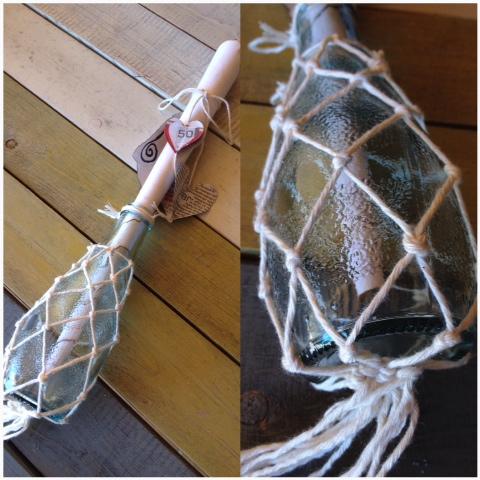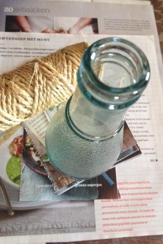 Partimos de unas botellitas de Tónica (me llevé por lo menos 10 a casa vacias), y una cuerda...