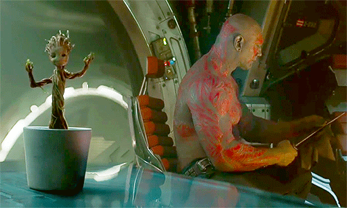Al final de la película, durante los primeros créditos, aparece un Groot bebé en una maceta bailando con una canción de fondo. Y creo que todos nos hemos enamorado de ese Groot.