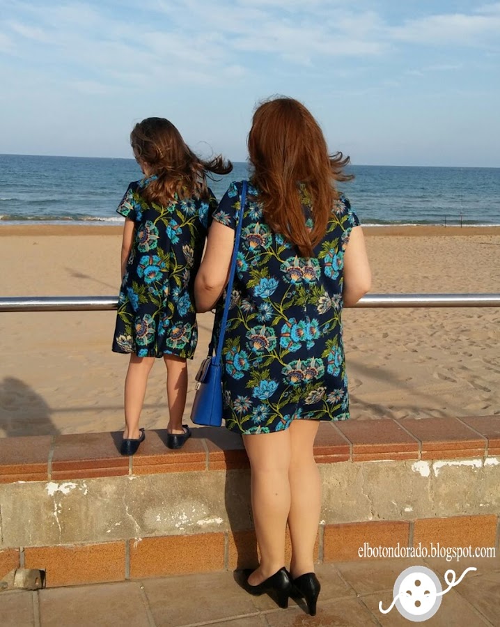 Este vestido lo he estrenado en estas vacaciones. Tenía bastante tela y mi niña, que es muy presumida y le encanta fijarse mis cosas, cuando vio esta tela le gustó mucho y me preguntó qué iba a hacer con ella, un vestido le dije y me contestó ¿para mí ? poniéndome morritos jejejeje. Así que pensé en hacer dos vestidos iguales.