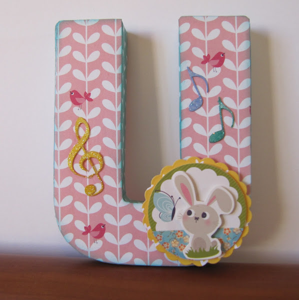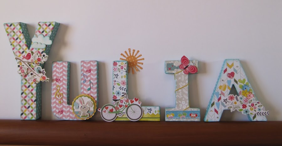 Sabía que la habitación de la peque es azul con un árbol y un koala en la pared. por lo que pensé que mis letras sería como un dulce paseo por el campo, cada una tendría un poquito de ese paseo predominando el azul y con toques en rosa