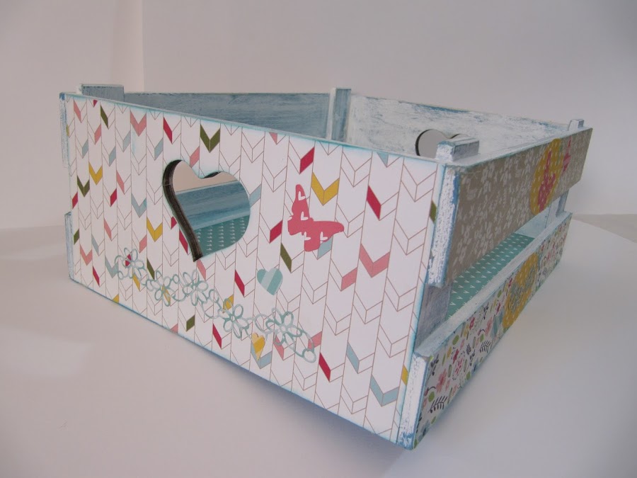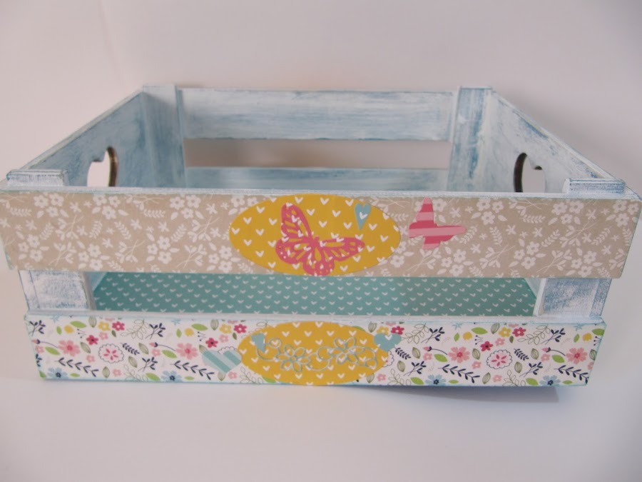 A juego hice una cajita utilizando los mismos papeles que las letras (preciosos), pintada y decapada en azul y en blanco