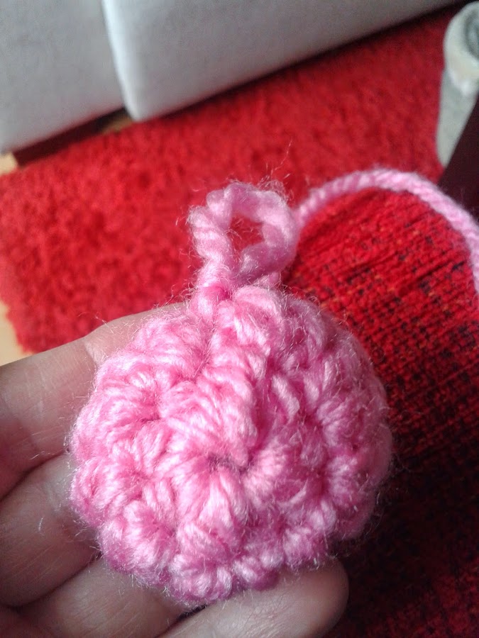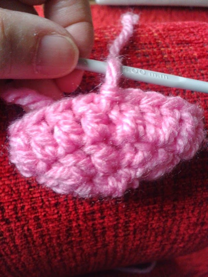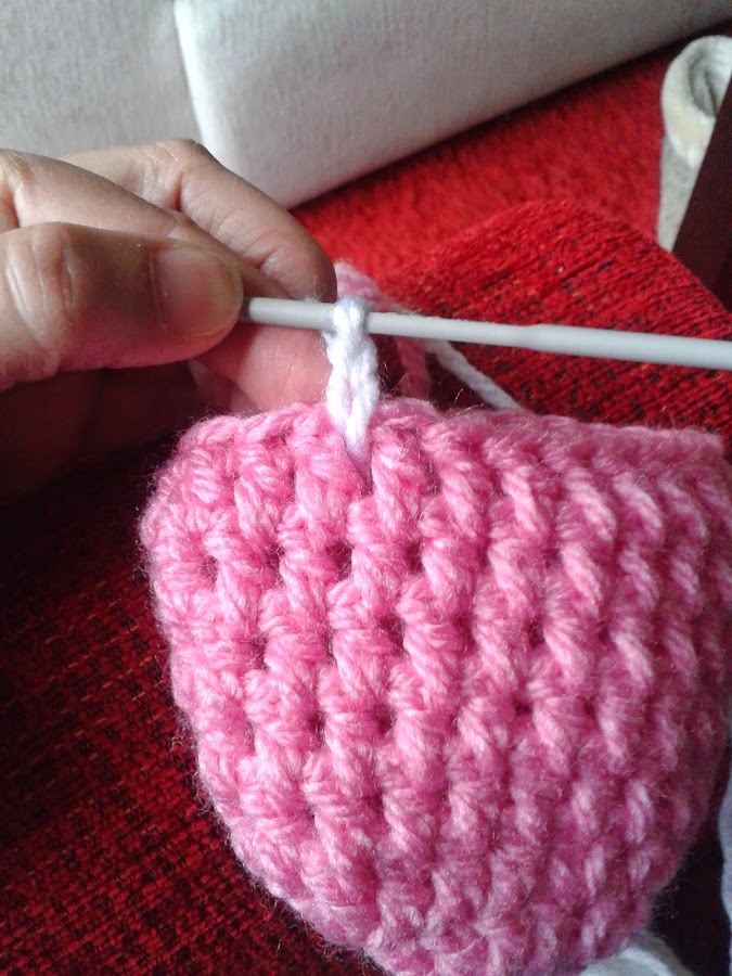 En el ejemplo de la zapatilla rosa y blanca, he hecho 7 vueltas de color rosa, además del círculo primero.