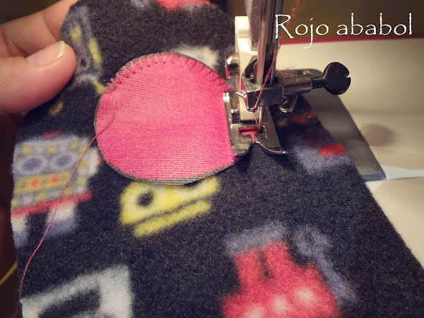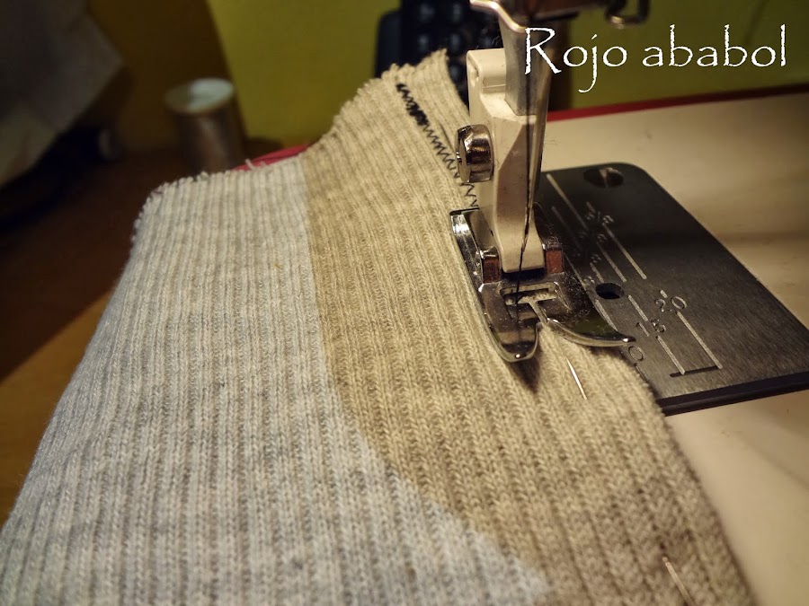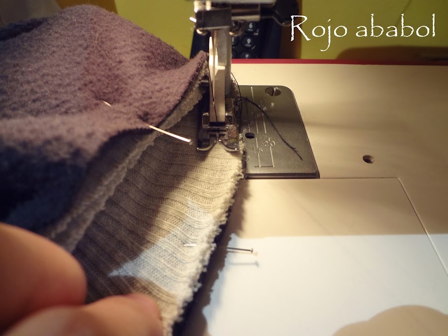 Y lo coseremos de esta manera: zig zag y tirando del hule mientras cosemos para que no se atasque.